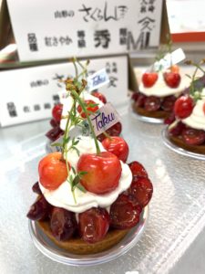 山形の坂部農園から直送されたさくらんぼをたっぷりと使ったタルトです。のせすぎです(笑)